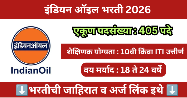 Read moreइंडियन ऑइल मध्ये 405 पदांसाठी भरती 2026 | IOCL Apprentice Bharti 2026