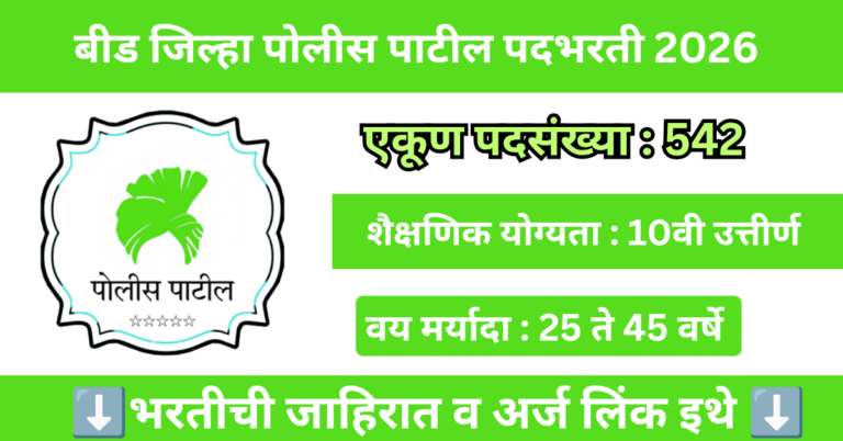 Read moreबीड जिल्ह्यात पोलीस पाटील पदासाठी 542 रिक्त जागेवर बंपर भरती जाहीर | Beed Police Patil Bharti 2026