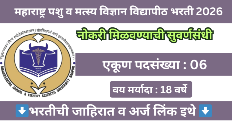 नोकरीच्या शोधात असलेल्या महिला आणि पुरुषांसाठी महाराष्ट्र पशु व मत्स्य विज्ञान विद्यापीठ मध्ये नोकरी मिळवण्याची सुवर्णसंधी निघून आलेली आहे या...