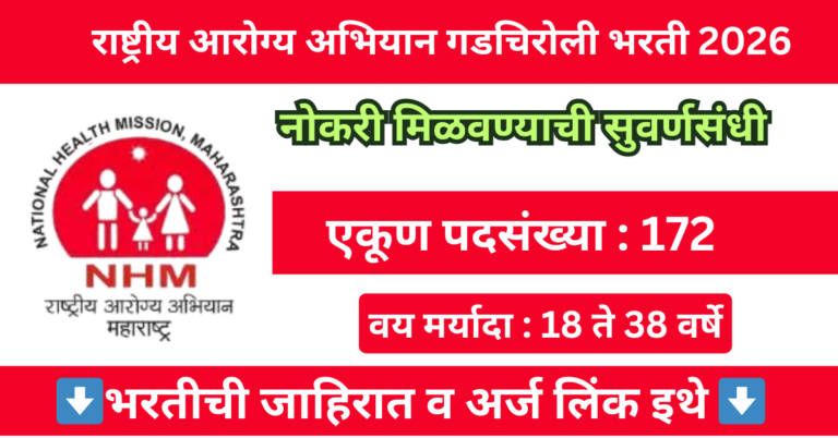Read moreफॉर्म भरायची संधी चुकवली? आता NHM Gadchiroli Bharti 2026 मध्ये 172 जागा खुल्या