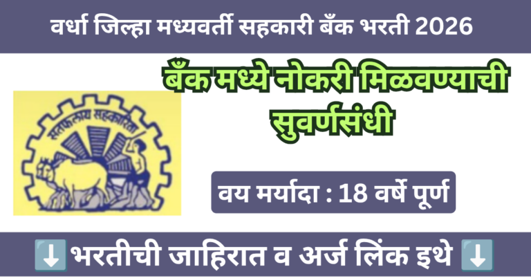 बँक भरतीची तयारी करणाऱ्या आणि बँक नोकरी शोधणाऱ्या महिला आणि पुरुषांसाठी वर्धा जिल्हा मध्यवर्ती सहकारी बँक अध्याय नोकरी मिळवण्याची सुवर्णसंधी...