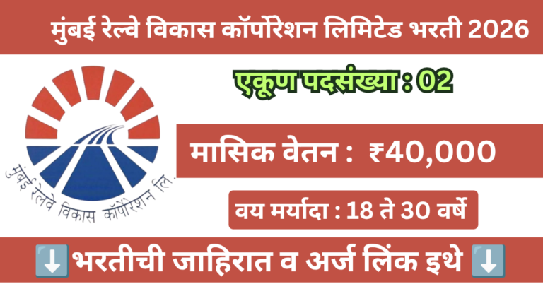 मुंबई रेल्वे विकास कॉर्पोरेशन लिमिटेड भरती 2026 | Mumbai Railway Vikas Corporation Ltd Bharti 2026
