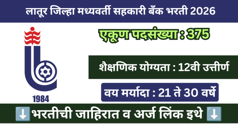 Read moreनोकरी मिळत नाहीये? Latur DCC Bank Bharti 2026 मध्ये थेट 375 पदांची सुवर्णसंधी