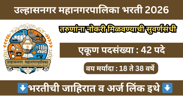 Read moreउल्हासनगर महानगरपालिकेत 42 पदांसाठी भरती 2026 | Ulhasnagar Mahanagarpalika Bharti 2026