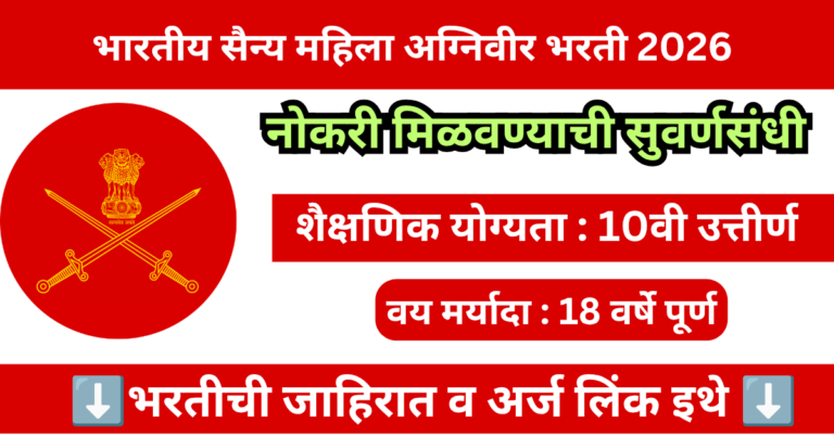 Read moreभारतीय सैन्य महिला अग्निवीर भरती 2026 | Indian Army Women Agniveer Bharti 2026