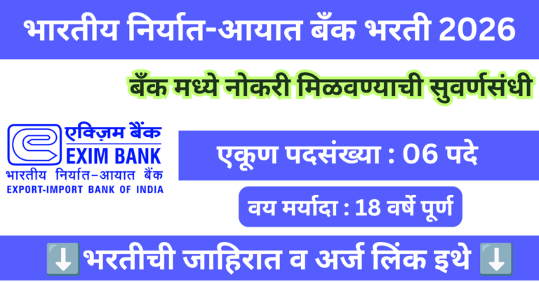 Read moreभारतीय निर्यात-आयात बँक मध्ये 06 पदांसाठी भरती 2026 | Exim Bank Bharti 2026