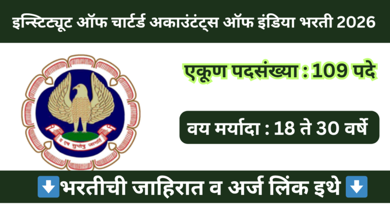 Read moreइन्स्टिट्यूट ऑफ चार्टर्ड अकाउंटंट्स ऑफ इंडिया मध्ये 109 पदांसाठी भरती 2026 | ICAI Bharti 2026