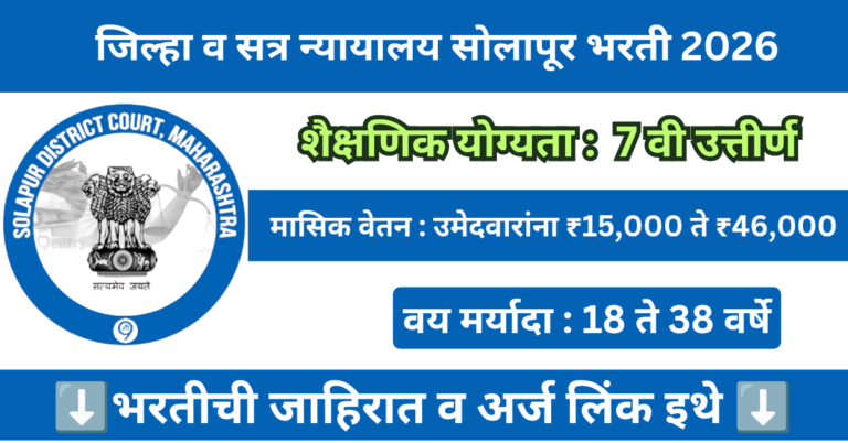 Read moreजिल्हा व सत्र न्यायालय सोलापूर भरती 2026 | Solapur District Court Bharti 2026
