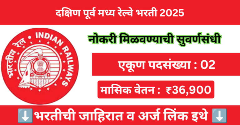 रेल्वे भरतीची तयारी करणाऱ्या महिला आणि पुरुषांसाठी दक्षिण पूर्व मध्य रेल्वे मध्ये नोकरी मिळवण्याची सुवर्णसंधी निघून आलेलागले आहे दक्षिण पूर्व...