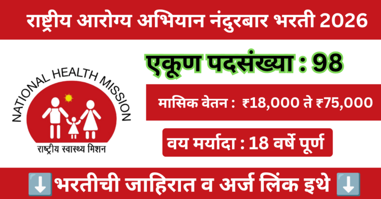 Read moreराष्ट्रीय आरोग्य अभियान नंदुरबार मध्ये 98 रिक्त पदांसाठी भरती 2026 | NHM Nandurbar Bharti 2026