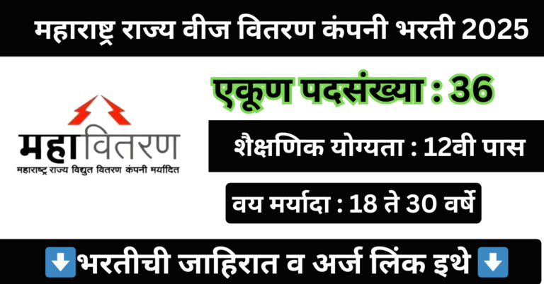 Read moreMahavitaran Bharti 2025 : महाराष्ट्र राज्य वीज वितरण कंपनी मध्ये 300 पदावर बंपर भरती जाहीर