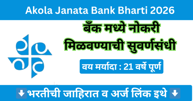 Read moreअकोला जनता कमर्शियल को-ऑपरेटिव्ह बँक भरती 2026 | Akola Janata Bank Bharti 2026