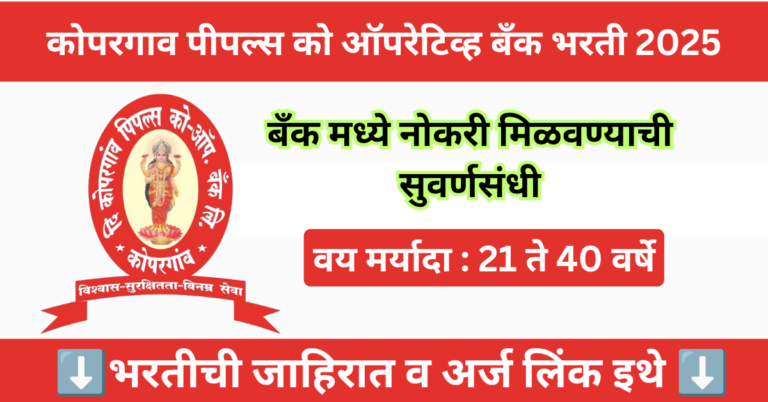 Read moreकोपरगाव पीपल्स को ऑपरेटिव्ह बँक भरती 2025 | Kopargaon Peoples Co Op Bank Bharti 2025