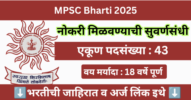 Read moreMPSC Bharti 2025: तब्बल 43 पदांसाठी मोठी भरती जाहीर, ऑनलाइन अर्ज सुरु