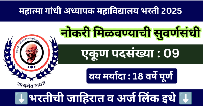 महात्मा गांधी अध्यापक महाविद्यालय मध्ये 09 रिक्त पदावर भरती जाहीर | Mahatma Gandhi Adhyapak Mahavidyalya Bharti 2025