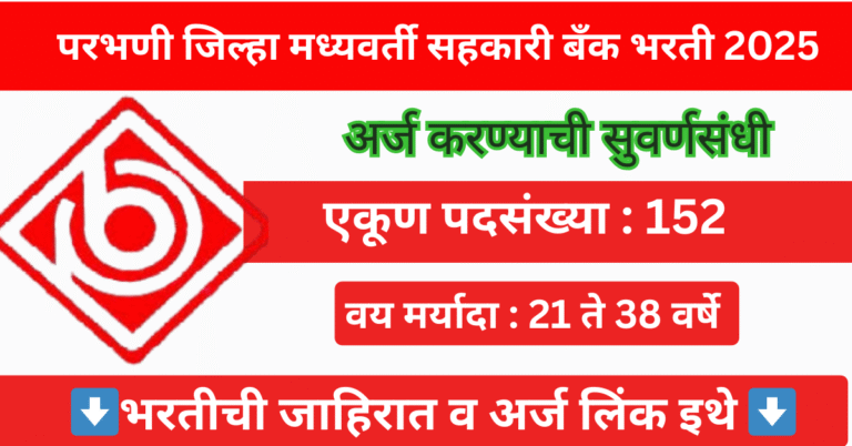 Read moreपरभणी जिल्हा मध्यवर्ती सहकारी बँक मध्ये 152 पदांसाठी भरती जाहीर 2025 | Parbhani DCC Bank Bharti 2025