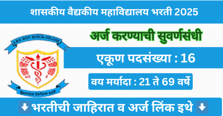 Read moreशासकीय वैद्यकीय महाविद्यालयामध्ये 16 पदांसाठी भरती जाहीर 2025 | GMC Dhule Bharti 2025