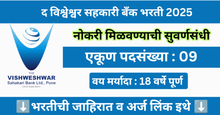 Read moreद विश्वेश्वर सहकारी बँक मध्ये 09 पदांसाठी भरती 2025 | Vishweshwar Sahakari Bank Bharti 2025