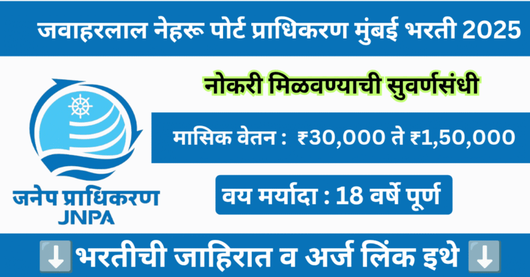 Read moreजवाहरलाल नेहरू पोर्ट प्राधिकरण मुंबई भरती 2025 | Jawaharlal Nehru Port Trust Bharti 2025