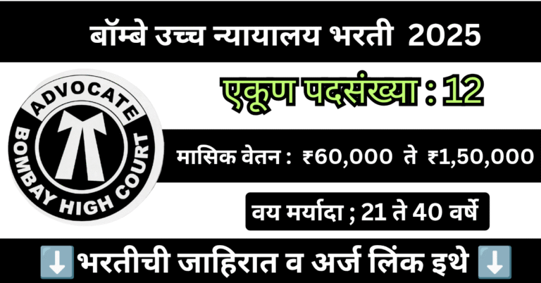 बॉम्बे उच्च न्यायालय 12 पदांसाठी भरती जाहीर 2025 | Bombay High Court Bharti 2025