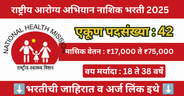 Read moreNHM Nashik Bharti 2025 : नाशिक जिल्ह्यात 42 नवीन पदांसाठी मोठी भरती सुरू
