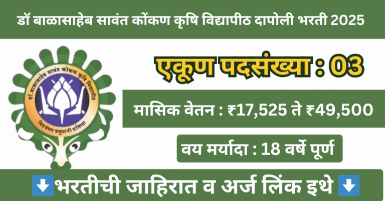 Read moreDBSKKV Bharti 2025 : शेतकरी विद्यार्थ्यांसाठी सुवर्णसंधी , लगेच अर्ज करा