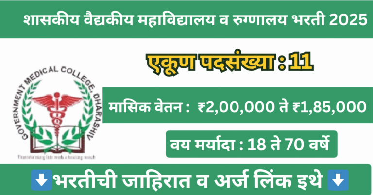 Read moreGMC Dharashiv Bharti 2025 | सरकारी नोकरीची सुवर्णसंधी – अर्ज सुरू