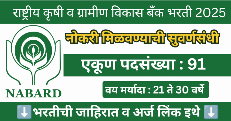 Read moreNABARD Mumbai Bharti 2025 – नॅशनल बँकेत तब्बल 91 पदांवर मोठी भरती सुरू, अर्ज करा लगेच