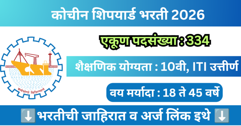 Read moreकोचीन शिपयार्ड मध्ये 331 रिक्त पदांसाठी भरती 2026 | Cochin Shipyard Bharti 2026