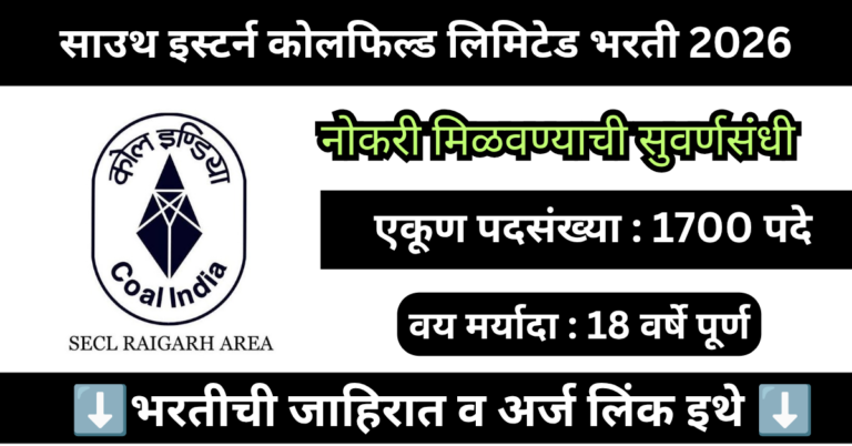 Read moreसाउथ इस्टर्न कोलफिल्ड लिमिटेड मध्ये 1700 पदांसाठी बंपर भरती 2026 | SECL Bharti 2026