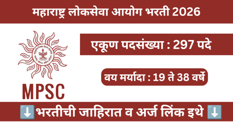 MPSC भरती ची तयारी करणाऱ्या तरुणांसाठी पुन्हा एकदा आनंदाची बातमी समोर आलेली आहे महाराष्ट्र लोकसेवा आयोग मार्फत 297 रिक्त जागेवर...