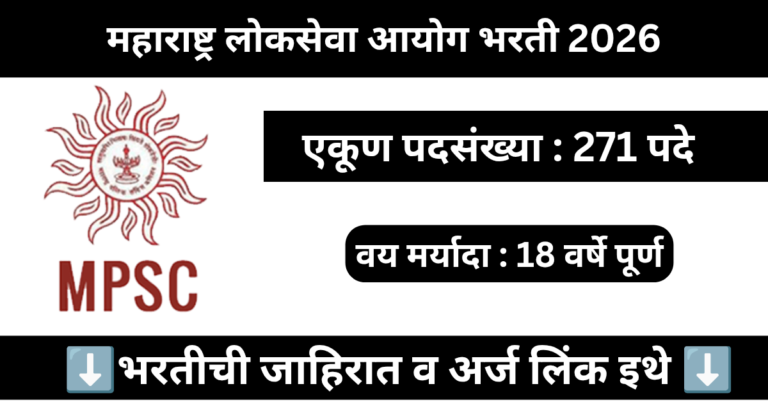 Read moreमहाराष्ट्र लोकसेवा आयोग मार्फत 271 पदांसाठी भरती 2026 | MPSC Bharti 2026