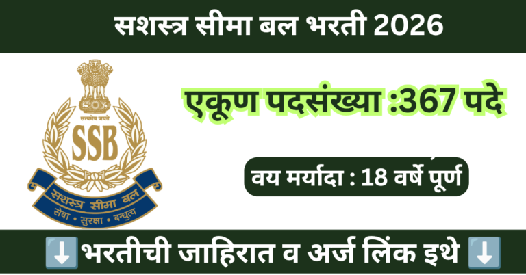 सशस्त्र सीमा बल मध्ये 367 पदांसाठी भरती 2026 | SSB Bharti 2026