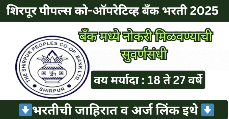Read moreशिरपूर पीपल्स को-ऑपरेटिव्ह बँक भरती 2025 | Shirpur Co-Op Bank Bharti 2025