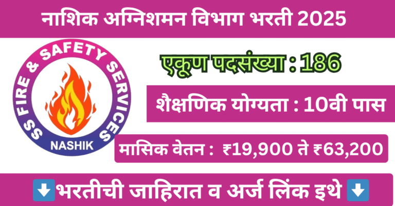 Read moreनाशिक अग्निशमन विभाग मध्ये 186 पदांसाठी बंपर भरती 2025 | Nashik Fire Department Bharti 2025