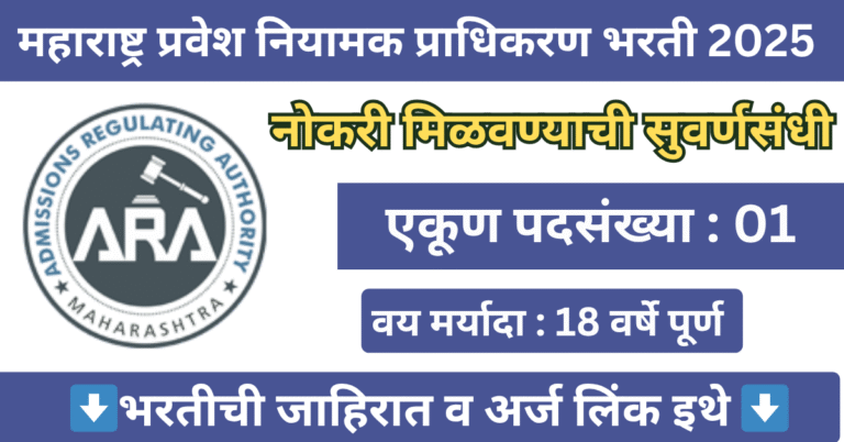 Read moreमहाराष्ट्र प्रवेश नियामक प्राधिकरण भरती 2025 | Maharashtra Admissions Regulating Authority Bharti 2025