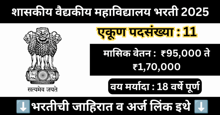 Read moreGMC Nashik Bharti 2025 : शासकीय वैद्यकीय महाविद्यालयात मोठी भरती जाहीर – लगेच अर्ज करा