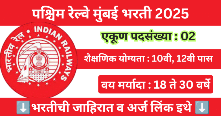 Read moreपश्चिम रेल्वे मुंबई भरती 2025 | Western Railway Mumbai Bharti 2025