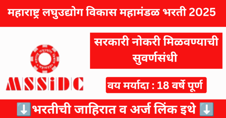 Read moreMSSIDC Bharti 2025 : शासकीय नोकरीची वाट पाहणाऱ्यांसाठी खुशखबर, अर्ज सुरू