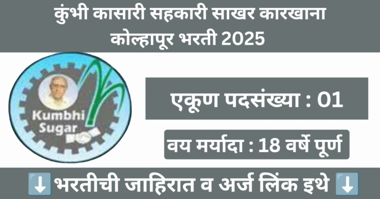 कुंभी कासारी सहकारी साखर कारखाना कोल्हापूर भरती 2025 | Kumbhi Kasari Sakhar Karkhana Bharti 2025