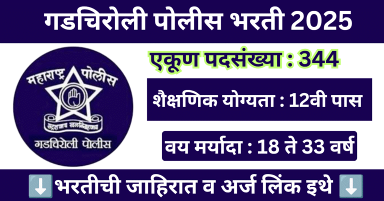 Read moreगडचिरोली पोलीस विभागात 344 पदांसाठी भरती जाहीर 2025 | Gadchiroli Police Bharti 2025