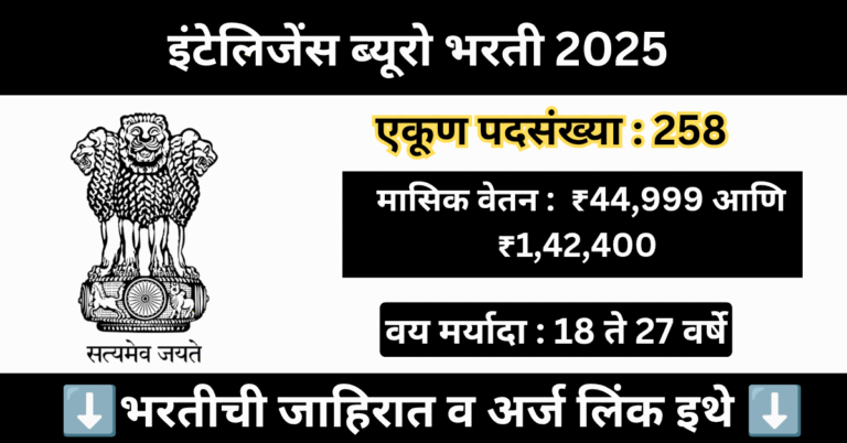 Read moreइंटेलिजेंस ब्यूरो मध्ये 258 पदांसाठी मुंबई भरती 2025 | Intelligence Bureau Bharti 2025