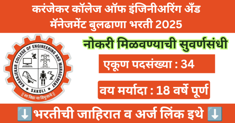 Read moreकरंजेकर कॉलेज ऑफ इंजिनीअरिंग अँड मॅनेजमेंट बुलढाणा भरती 2025 | Karanjekar College of Engineering and Management Bharti 2025