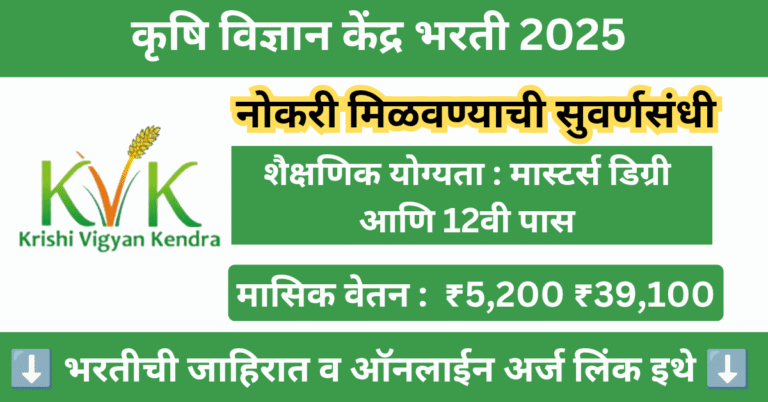 Read moreKVK Bharti 2025 : कृषी विज्ञान केंद्रात मोठी भरती जाहीर – लगेच अर्ज करा