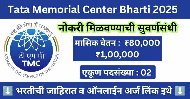 Read moreTata Memorial Center Bharti 2025 | टाटा मेमोरियल सेंटर मुंबई व टाटा मेमोरियल हॉस्पिटल भरती 2025