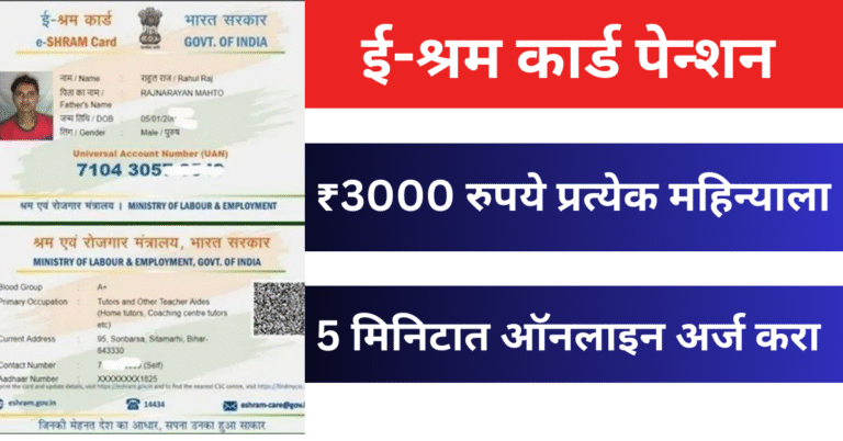 Read moreई-श्रम कार्ड पेन्शन योजना, ₹3000 रुपये प्रत्येक महिन्याला | E Sharm Card Pension Yojana