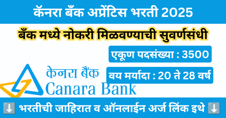 Read moreCanara Bank Apprentice Bharti 2025 | कॅनरा बँक मध्ये अप्रेंटिस पदावर 3500 जागांसाठी भरती 2025