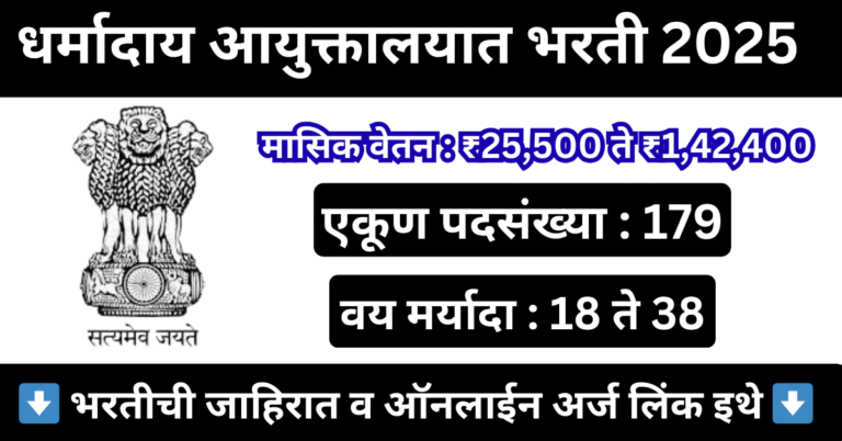 Read moreधर्मादाय आयुक्तालय मध्ये 179 पदावर भरती जाहीर, 10वी उत्तीर्ण करू शकता अर्ज | Dharmaday Ayuktalay Bharti 2025