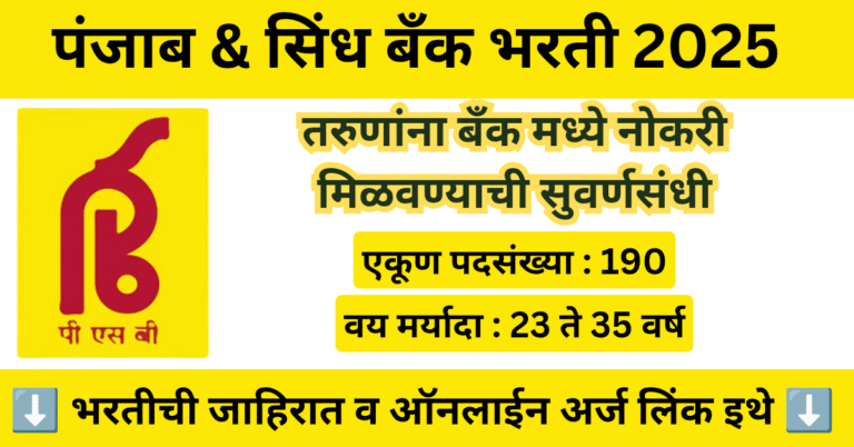 Read moreपंजाब & सिंध बँकेत 190 पदांसाठी भरती जाहीर, सुवर्णसंधी चुकवू नका | Punjab And Sind Bank Bharti 2025