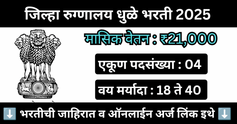 जिल्हा रुग्णालय धुळे मध्ये 04 पदावर भरती 2025 | District Hospital Dhule bharti 2025